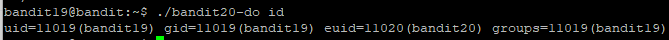 출력 결과, bandit20-do 라는 프로세스를 실행한 사용자와 그룹은 bandit19임을 알 수 있다.