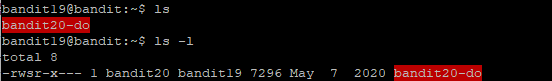 bandit19에 로그인한 후, ls를 이용해보니 "bandit20-do"라는 파일을 확인할 수 있었습니다.