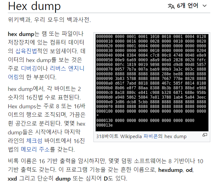 이게 hexdump 형식이라고 보셔도 무방할 것 같네요...